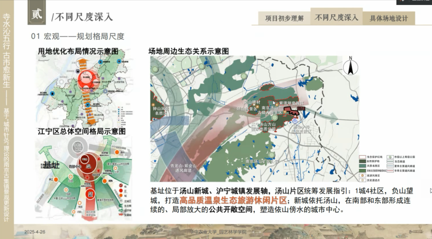 题目:栖霞叠境、涸脉复涌——基于城市双修理念下的汤山古集镇片区景观规划设计
