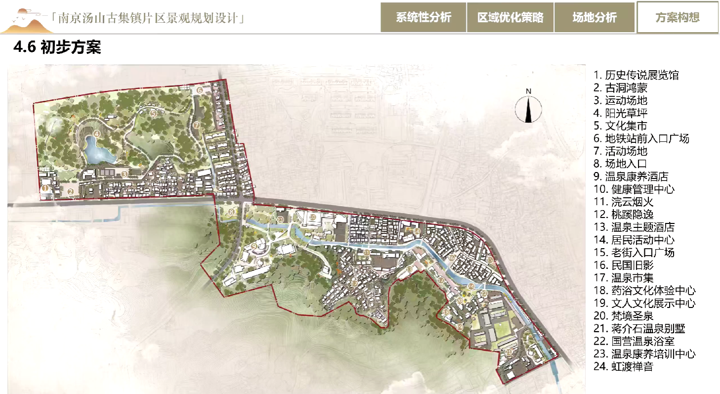 题目:南都繁会·古市新生——南京市汤山古集片区景观规划设计