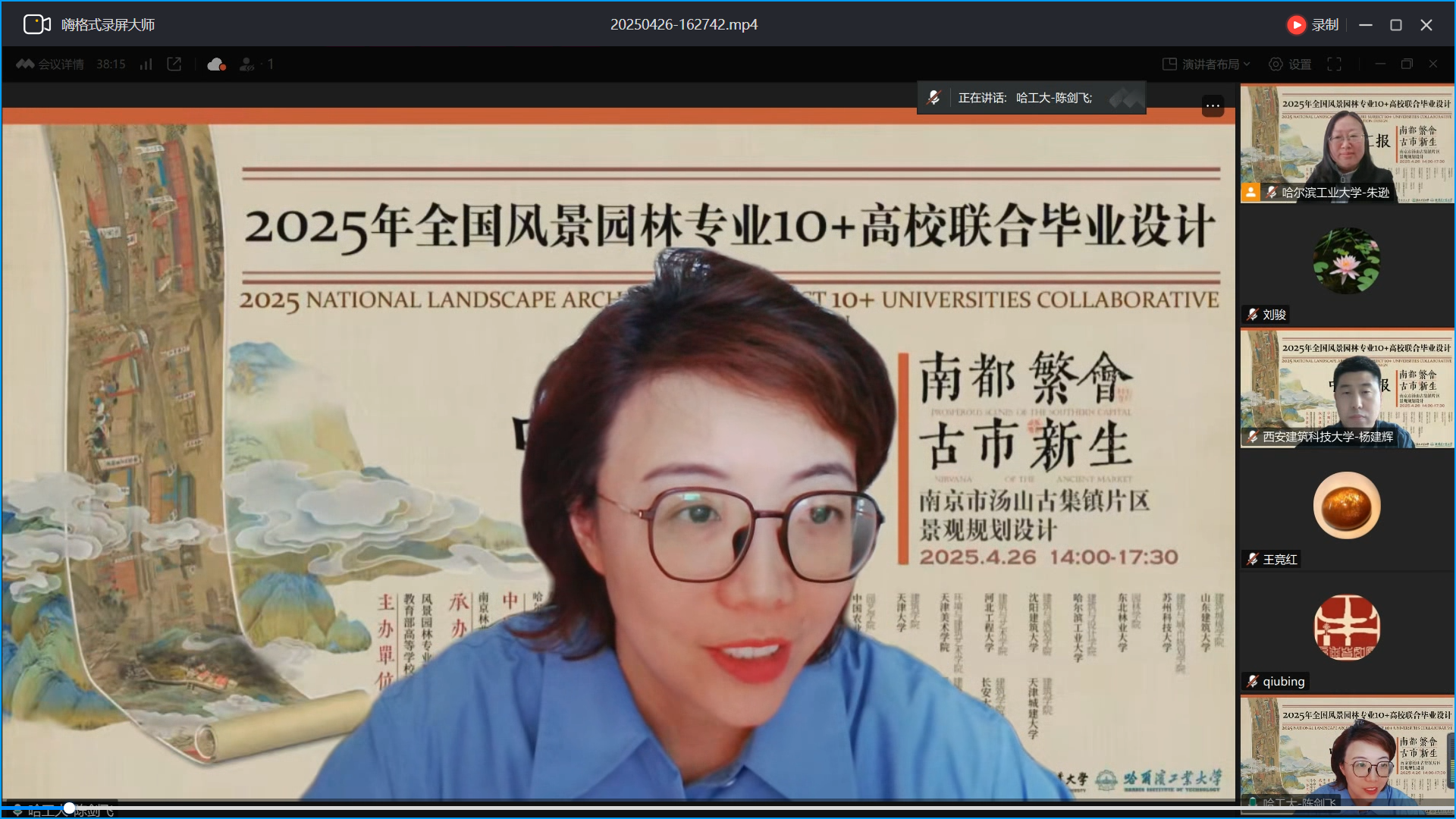哈尔滨工业大学建筑与设计学院副院长陈剑飞教授在致辞中指出,本次联合毕业设计紧扣国家生态文明战略,以汤山老街保护与活化这一时代课题为切入点,既检验专业能力,更彰显学科价值。期待通过跨学科、跨地域协作,探索生态保护、文化传承与创新发展的新路径,为历史街区可持续发展贡献智慧。希望与各校同仁深入交流,共同开拓风景园林助力城市高质量发展的创新模式,为推动学科发展注入新活力。